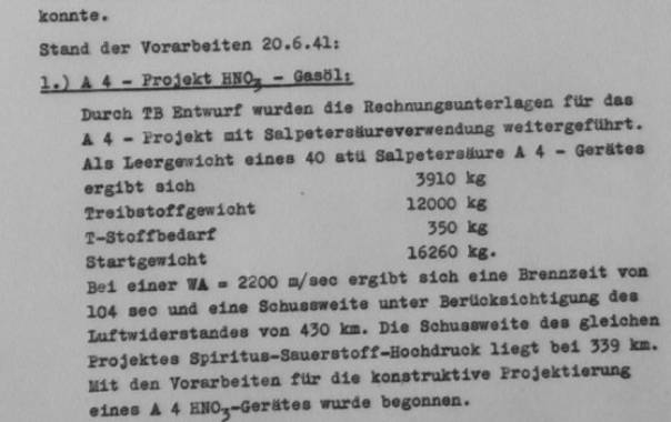 nochmals als A4 Gleiter mit Salpetersäuretriebwerk zu Projektieren. Das 30t 40