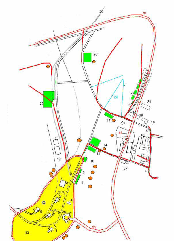 164 Schreinerei, Unterkünfte, Luftschutzstollen.